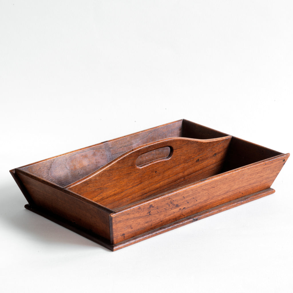 An elegant Victorian housekeeper's tidy of Shaker style proportions, with integrated handle, and a lovely time-worn patina. Excellent for the storage of cutlery beside the dining table or in the kitchen to hold bread knives, wooden spoons, and other utensils.