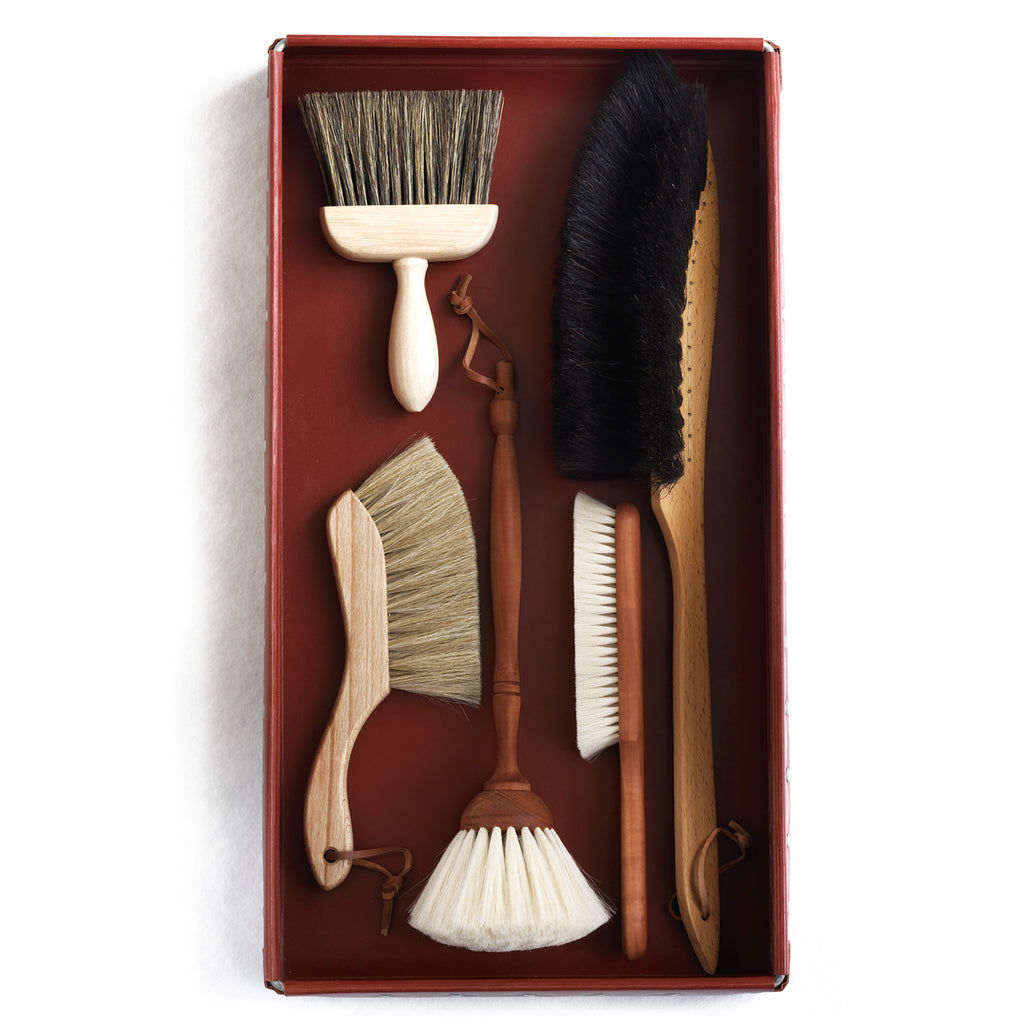 Our below stairs set includes some of our very popular handmade brushes that are suited to dealing with all your domestic every-day dusting needs. Tissue wrapped and packed into our largest vintage ex-museum archive box, they are the perfect present for those that exercise diligent housekeeping and appreciate the finest of brushes.
