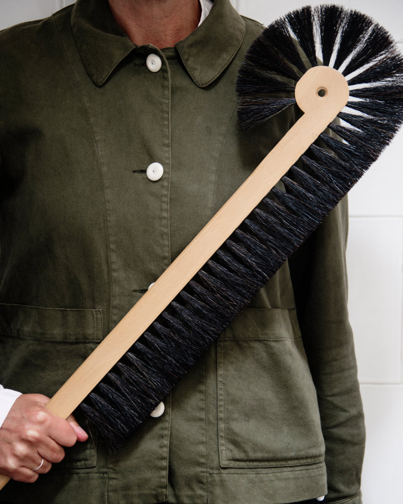 With its long waxed beech wood handle and elegant crest of tufted horse tail hair, this traditional handmade brush of Victorian ancestry is just-the-job for reaching over, into, and around, the top of all cabinets, cupboards and high shelving, without the need for step ladders. It is also excellent for reaching into dado and picture rails, high level cornicing, furniture pediments and door architrave – in fact any hard-to-reach recess or ledge it will tackle, effortlessly.