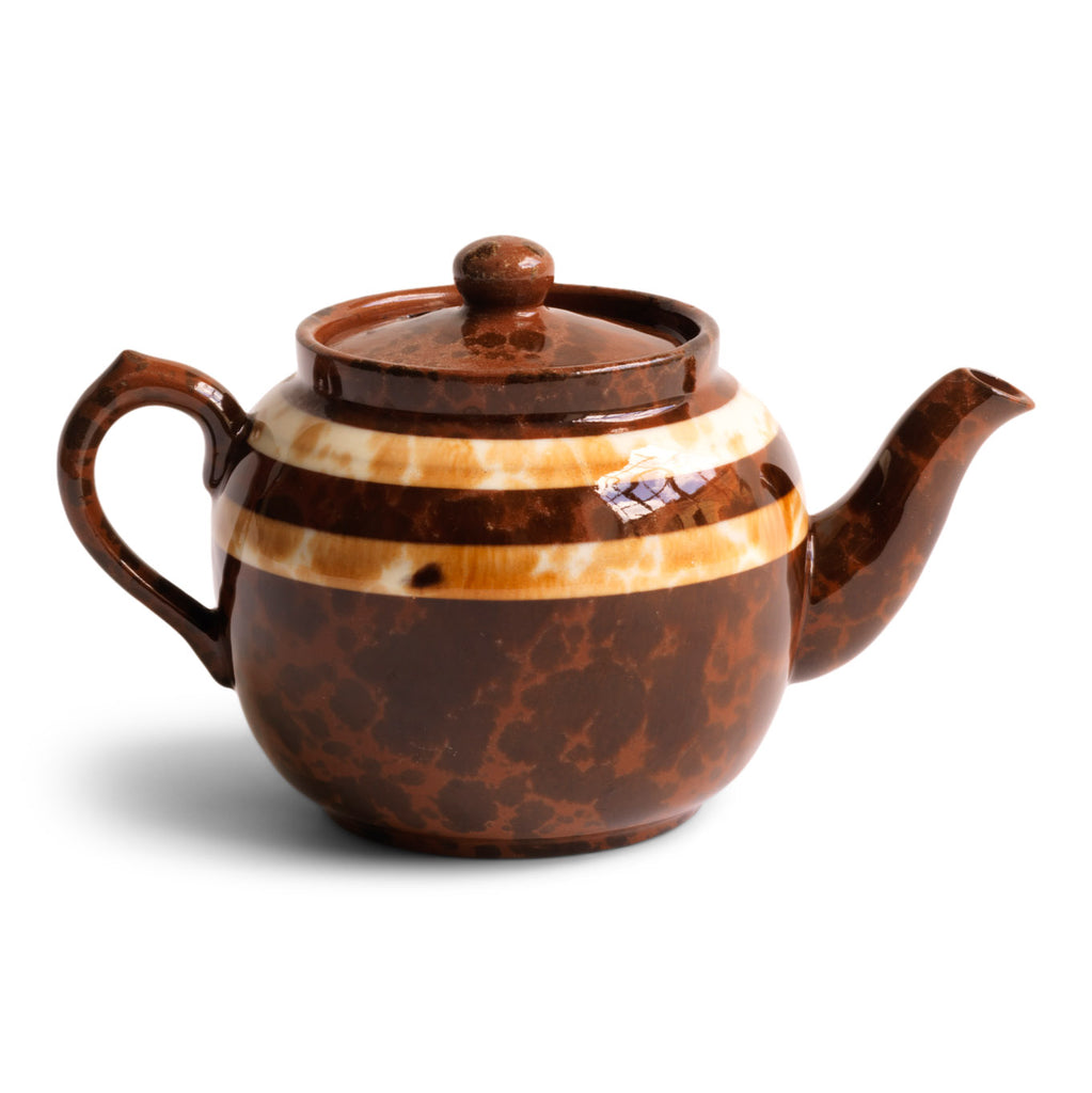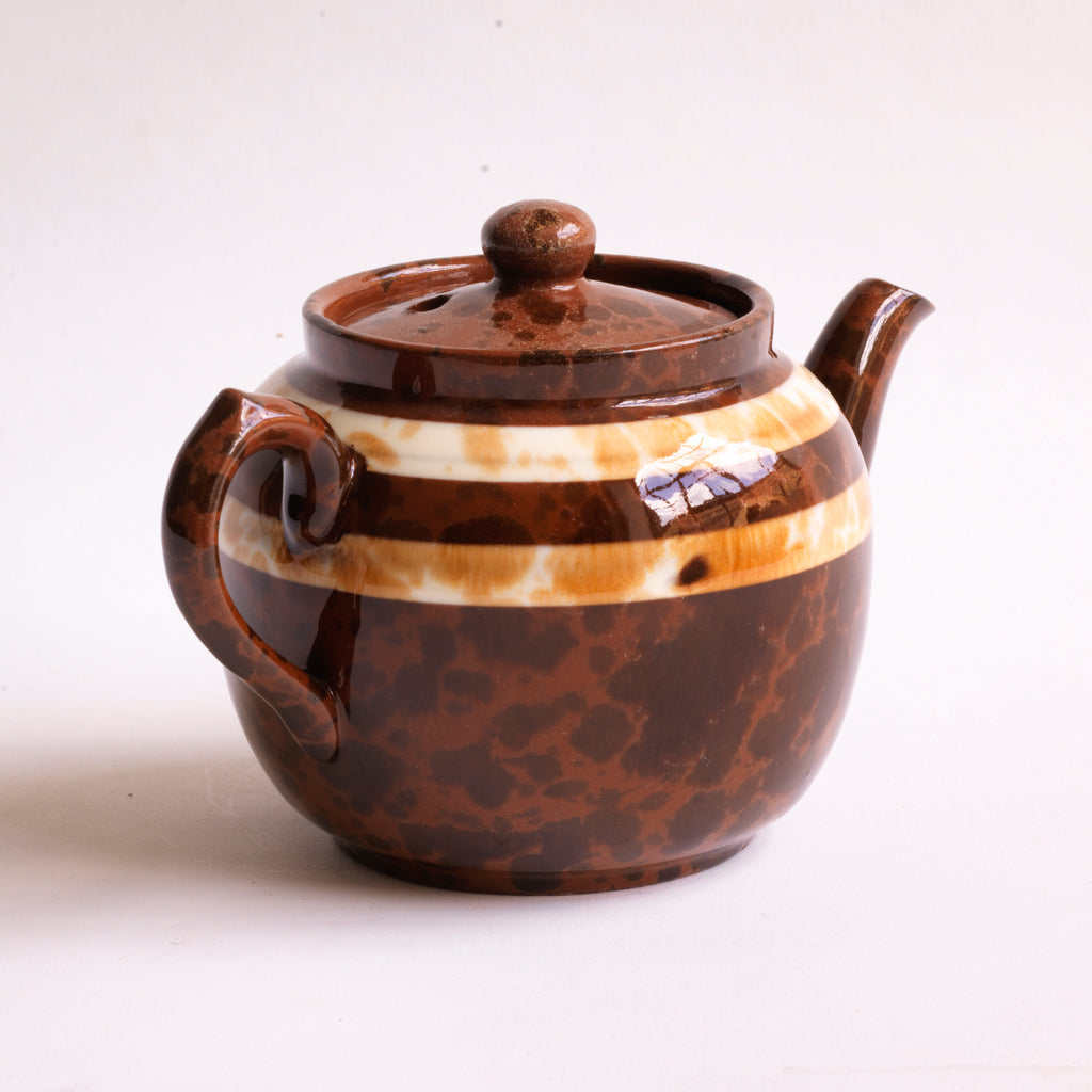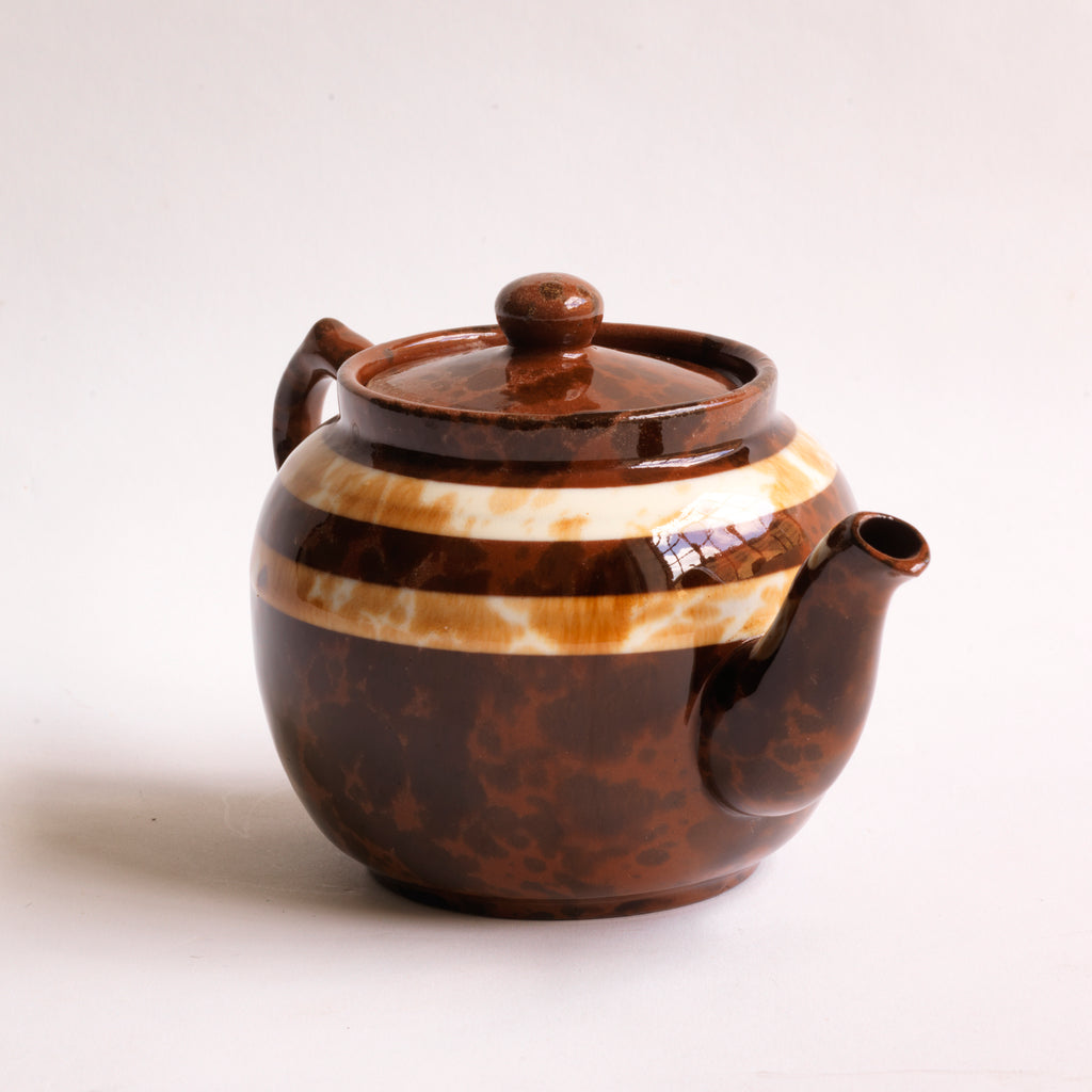 The Brown Betty is the archetypal everyday teapot, and its heyday of design lies in the first part of the twentieth century. Affordable, utilitarian and unpretentious, it was to become a design classic. The red Etruria Marl clay resulted in a ceramic with high heat retention and so naturally suited the making of teapots; while the Rockingham glaze - creating a streaky finish as it was fired - helped disguise any tea dribbles while the pot was in use. Come the 1920s, it was every household’s teapot of choice, being produced with varying striped bands of colour and marbling. By 1926 the Staffordshire pottery industry, such as the potteries of James Sadler & Sons and Joseph Bourne & Sons Ltd, was making near half a million Brown Betty teapots per week. The original Brown Betty with its mottled glaze and bands of colour is no longer in production, yet we constantly strive to source these early twentieth century vintage classics, and in as near perfect condition as is possible.