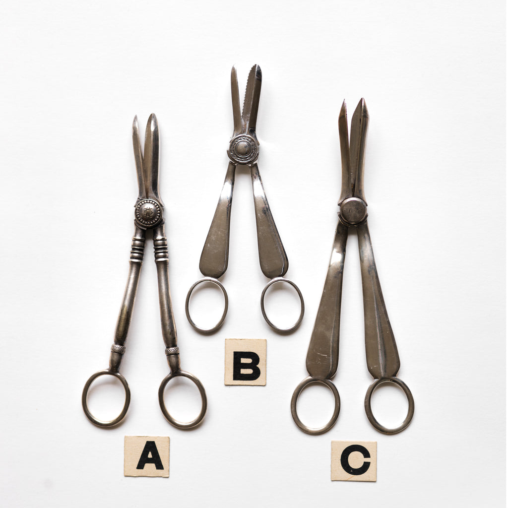 Grape scissors were first created in Regency England, yet it wasn’t until the Victorian period that they really took off, when they were used during the dessert course at dinner. It was only after the grapes had been correctly cut, that it was permissible for the diner to use his or her fingers.