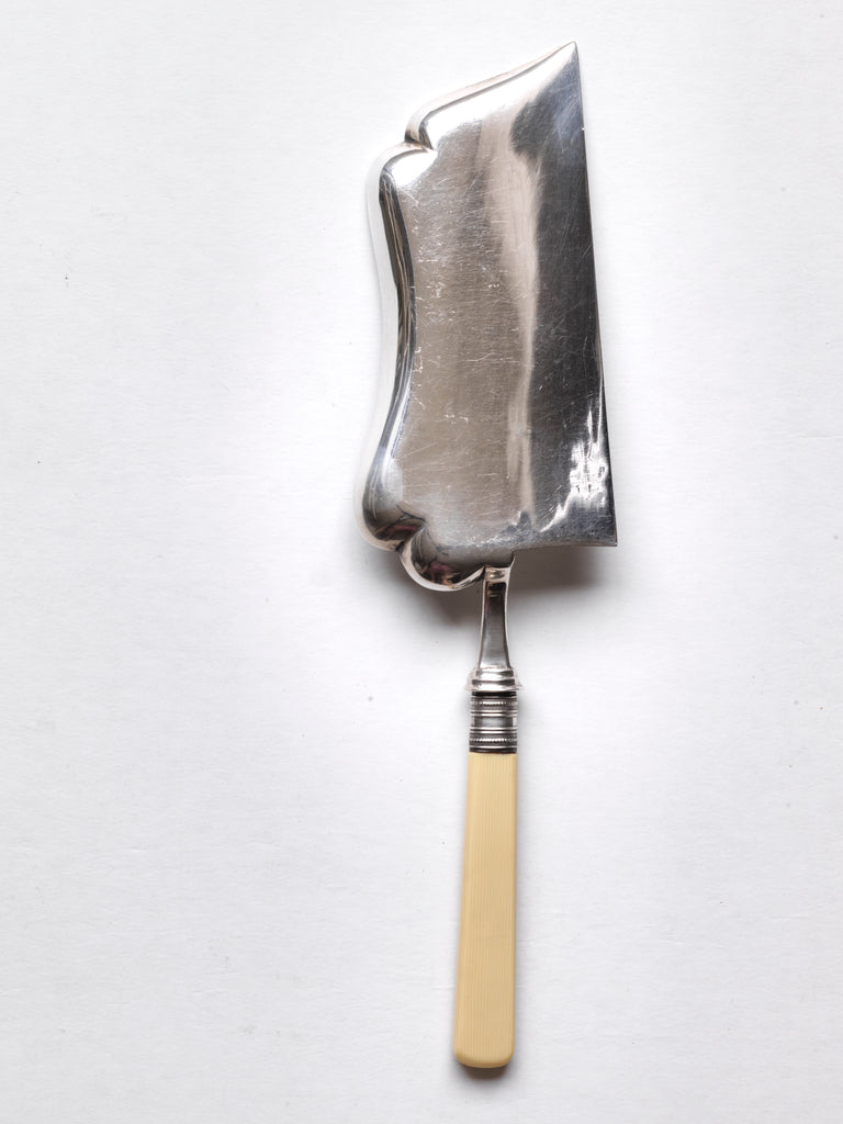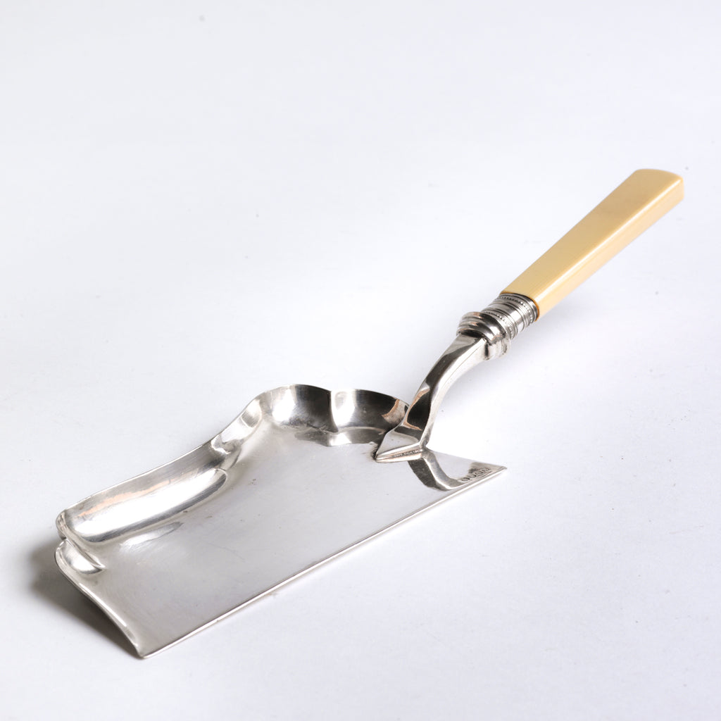 Our vintage ‘bone-handled’ crumb tray is both elegant and functional, and the renewed popularity of dining etiquette make it a stylish addition to today’s table. Much of our cutlery and related table ephemera has ivorine handles and plated silver components and this was made in Sheffield England, once the heart of the world’s flatware industry.