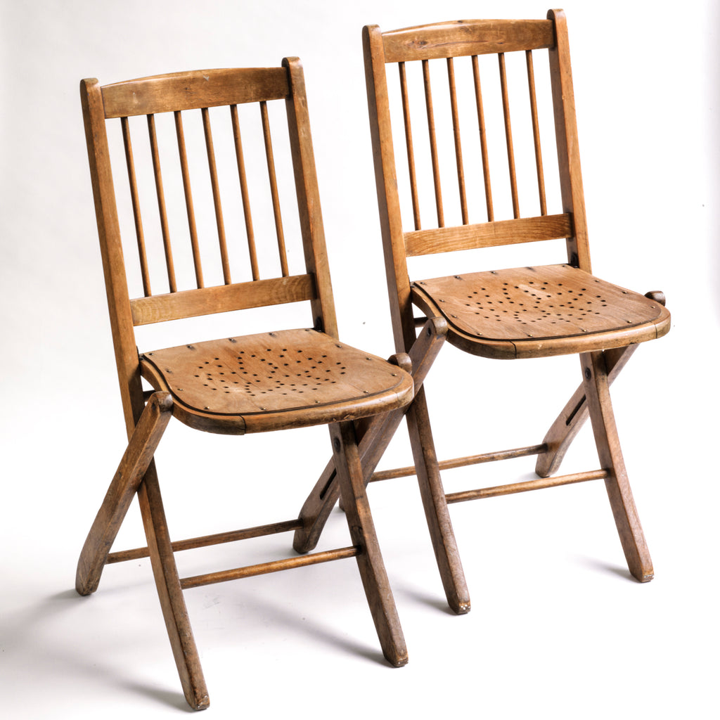 Condition: good for their age, with some wear here and there - with some minor splits in the wood, yet all strong and usable, and nothing untoward. Note: the piercing pattern on the seat varies and can differ from that shown in the image.