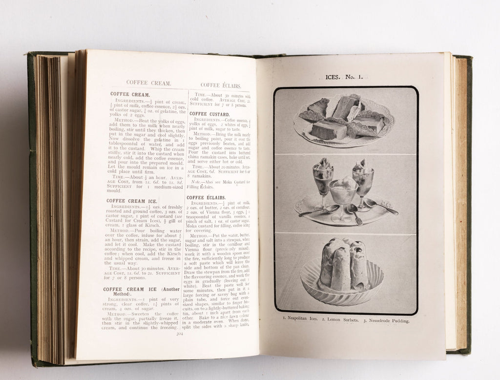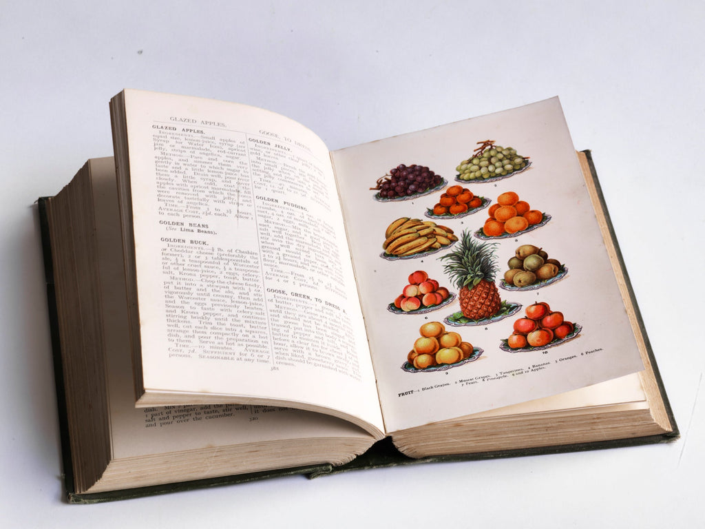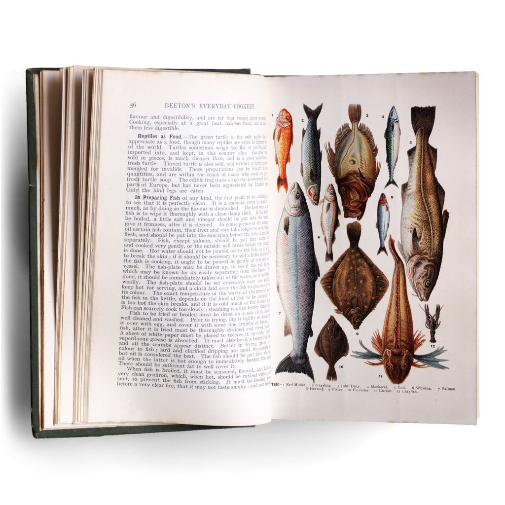 A fine example of Mrs Beeton's Every Day Cookery. This edition published in 1909 by "Ward, Lock & Co Ltd of Warwick House, Salisbury Square, London EC" has many wonderful coloured plates and photographic illustrations that bring back to life the food and grand dining of the Victorian era.