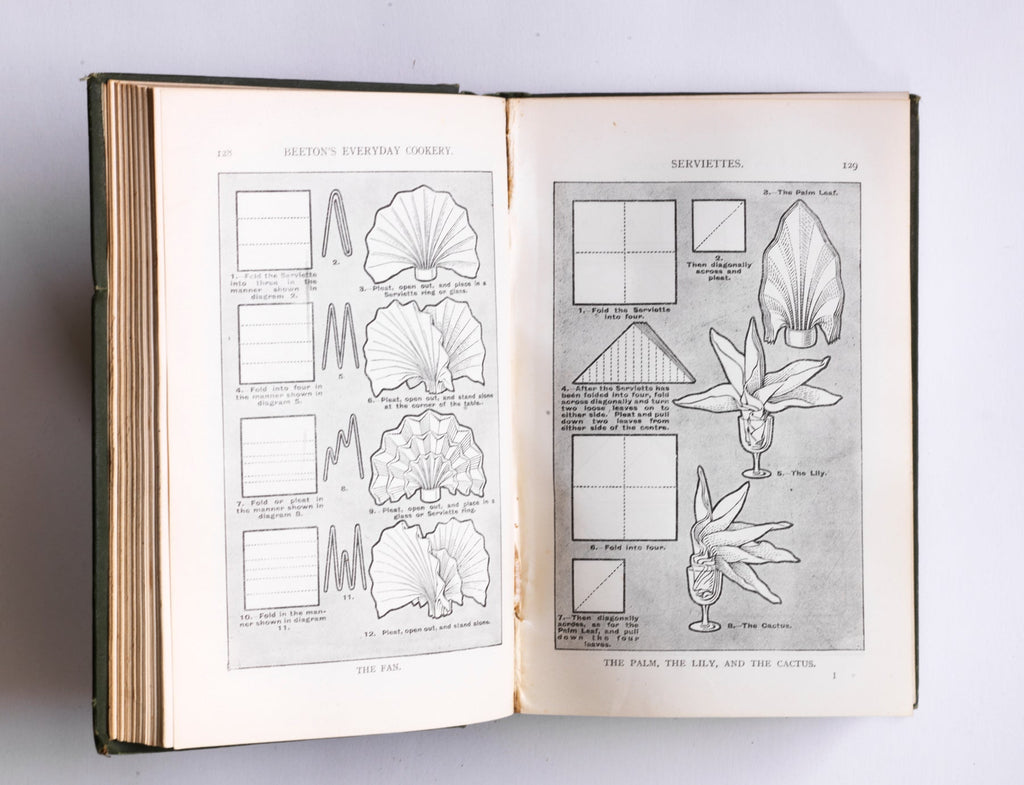 The book also deals with neatness, economy, and punctuality in the kitchen, along with things we'd now run a mile from, such as how to pluck, to singe, to bone, to draw, to truss all manner of fowl. And if you need to know how to fold a napkin - Beeton will tell you here. Mrs Beeton's Every Day Cookery offers a wonderful glimpse into a world long gone. Beautifully.