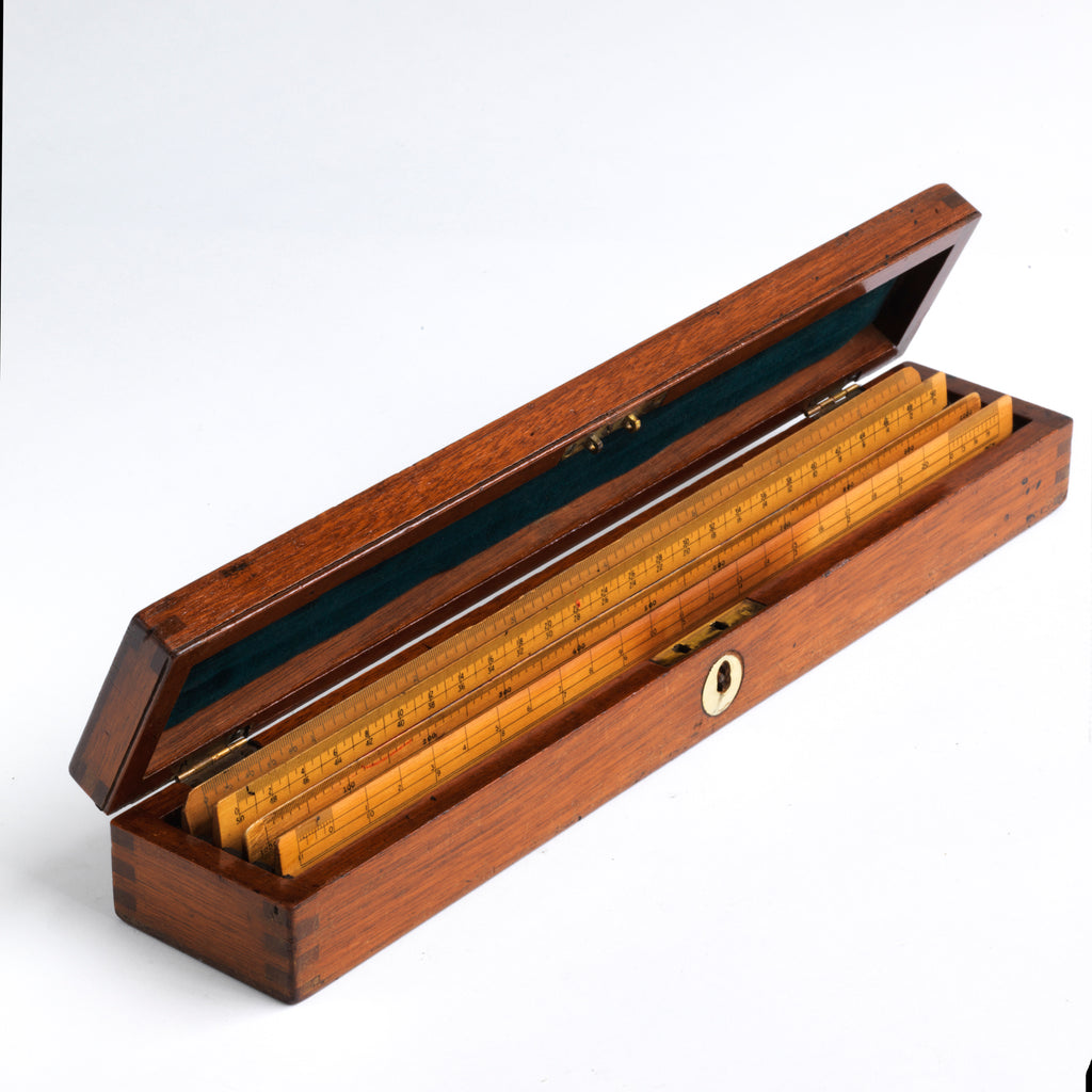 Condition: good, with some slight marks here and there to both the box and rulers, and some discolouration to one ruler (see image) - but nothing that doesn't add character.
