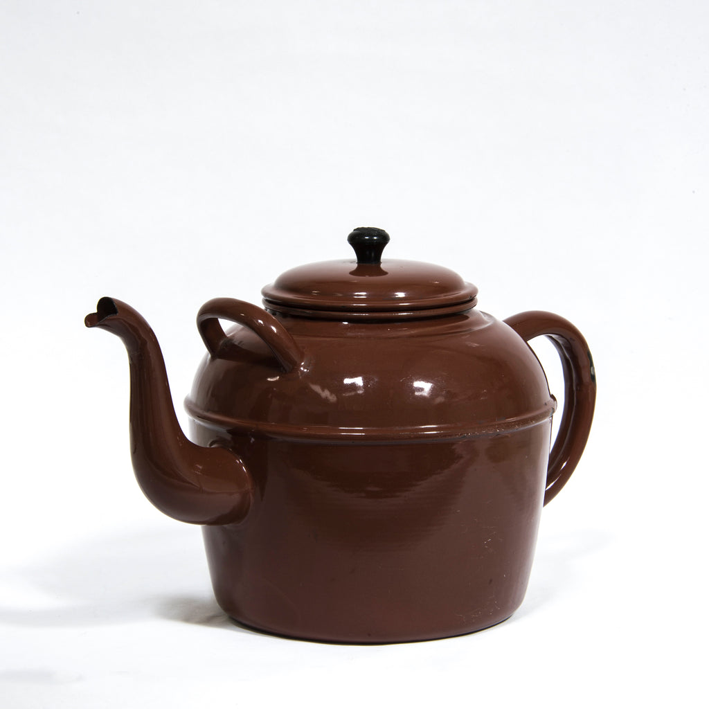 Up until the late 19th century your everyday teapot was either ceramic or tin. Although the enamelling process had been invented hundreds of years before, it took the Industrial Revolution to drive forward the quality of vitreous enamelling and its application to everyday household objects; and by the dawn of the 20th Century enamelled kitchen equipment, pans, vessels, kettles and teapots had become commonplace. Enamel teapots became a 1920s alternative to their much heavier ceramic cousins, and the first half of the twentieth century saw their heyday, when enamel kitchenware became all-the-rage. Apart from being much lighter in weight and therefore far easier to use, they survived the rigours of a busy kitchen - for they didn't shatter when dropped. They also made a damn fine brew.