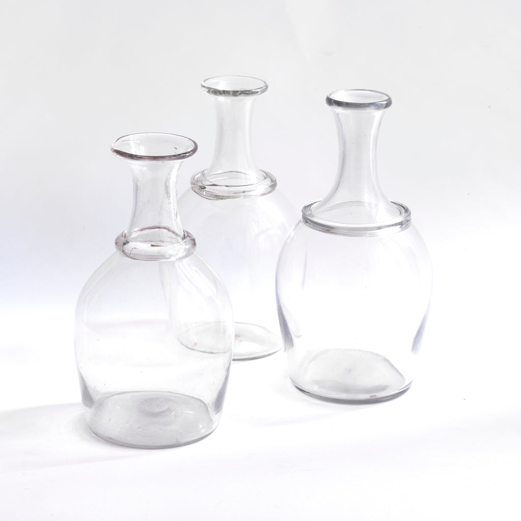 A collection of three very handsome handblown mid nineteenth century water carafes.  We are selling these individually at £135 each. We have just one left!