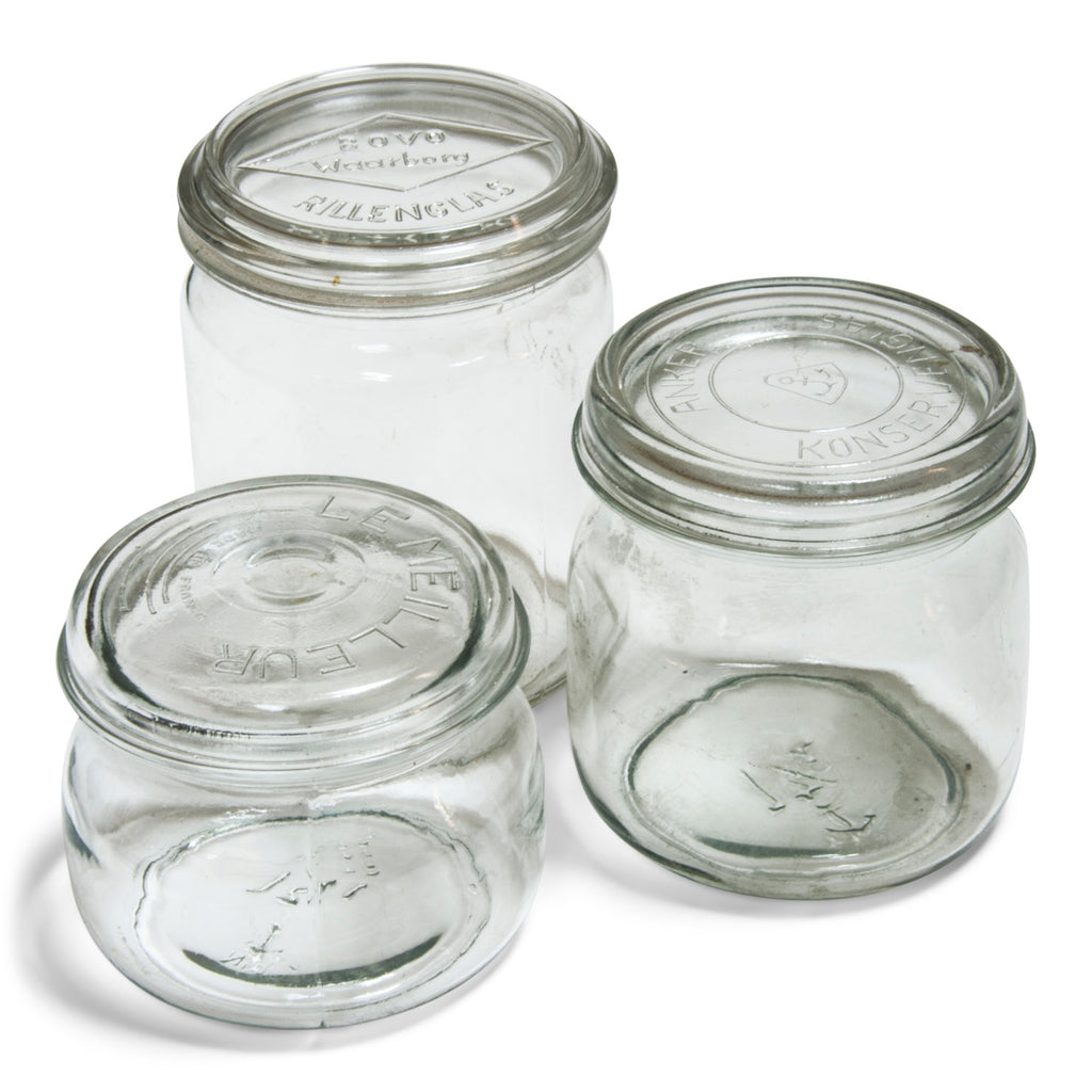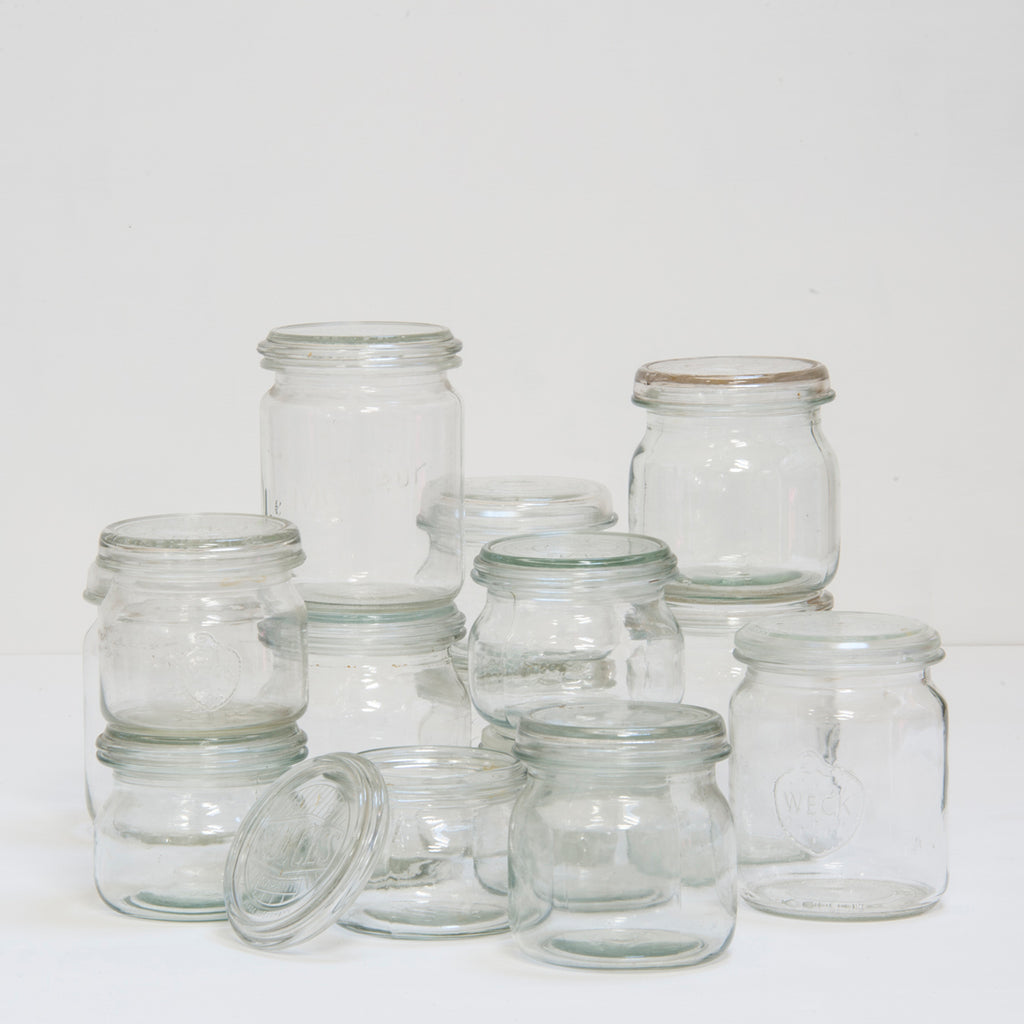 We have a quantity of these vintage glass storage jars, and they make very handy kitchen store cupboard containers. Rather than leave your various rices, flours and sugars in their packets, decant them into several of these jars and keep them at hand. Not only do they look great amassed together, they are totally practical, for you can see exactly what you are reaching for mid recipe, and the lid lifts off in an instant. No fiddling, no kerfuffle - straight in. Great for grabbing tea bags from too.