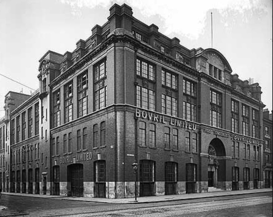 A health aiding Victorian preparation named "Virol" was marketed as having great nutritional value for children and the infirm, and was invented by Bovril in 1899 at their Old Street factory in London (see image). Resembling thick molasses, it contained refined beef fat - bone marrow from ox rib and calf bones; along with malt extract - a by-product of the brewing industry; egg; and lemon syrup. Rich in vitamins A, B and D, it was sold by late Victorian chemists in wide-mouthed stoneware pots, so that it could be easily dispensed by the spoonful. Advertising claimed that the food strengthened the whole body and built firm bones, yet it fell out of favour after the end of WWII.