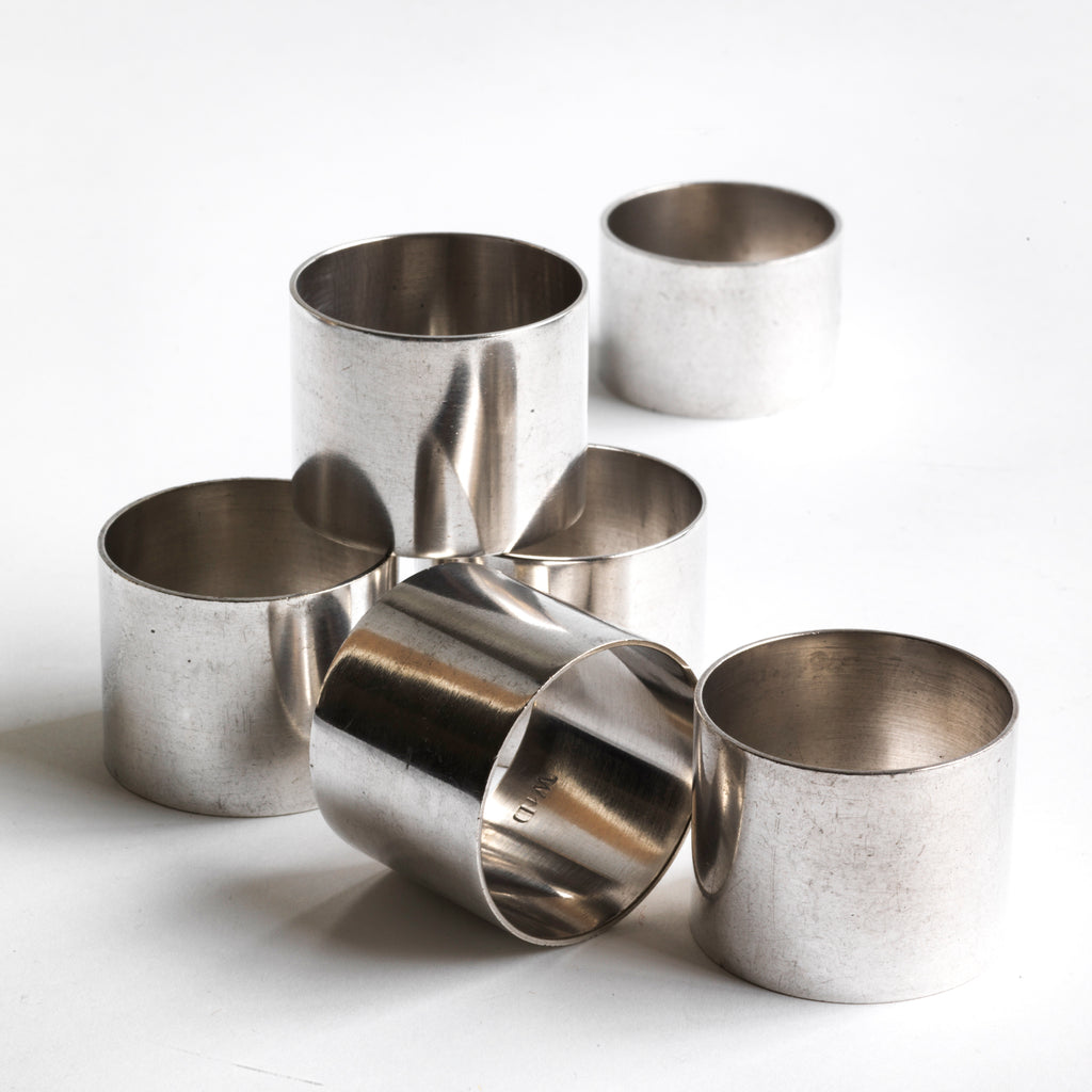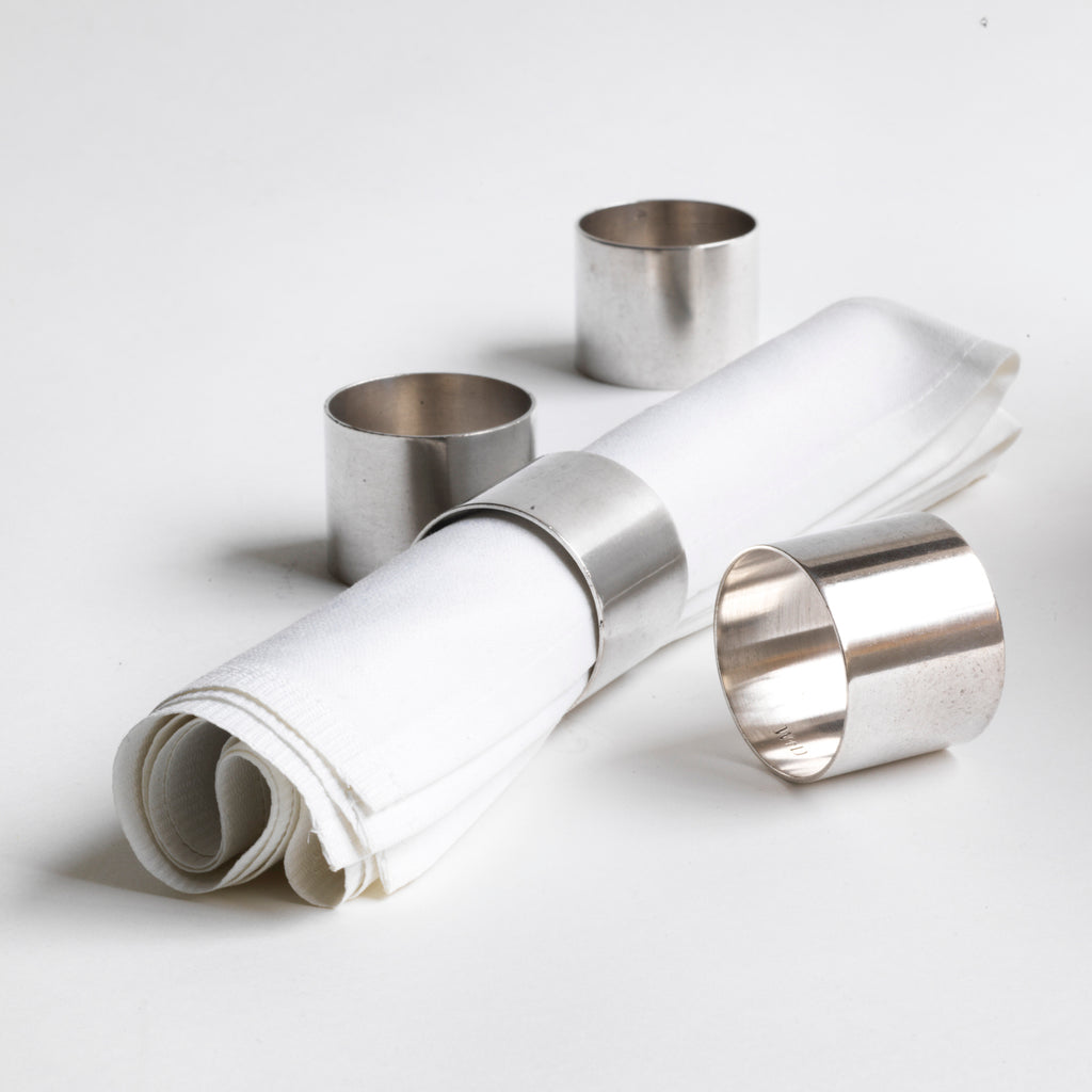 A matching series of silver-plated officer's mess napkin rings. Each is stamped W ⩚ D  - WD being an abbreviation for the UK’s War Department, and the arrow symbol denotes its military use. See  image. They are of a lovely simple band shape and weight, and we are selling them individually. Their simple design and clean lines denote their functionality, and make them a perfect addition to today’s table.