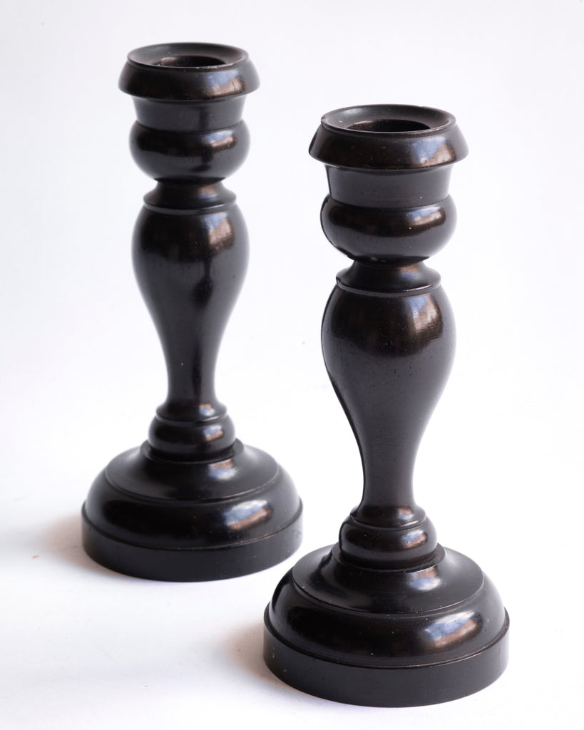 Pair Edwardian Ebony Candlesticks