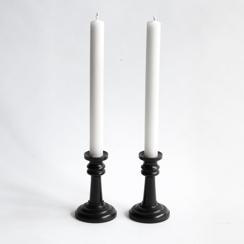 Pair Edwardian Ebony "Chess Piece" Candlesticks