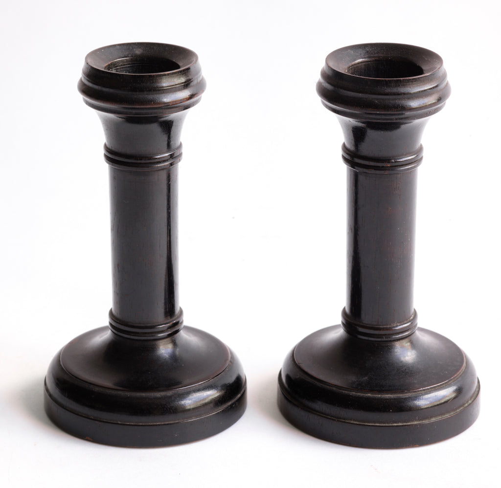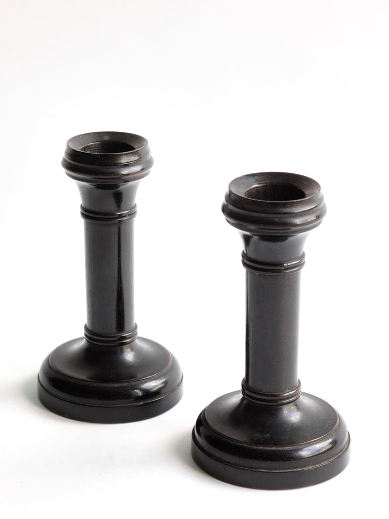Pair Edwardian "Chess Piece" Ebony Candlesticks