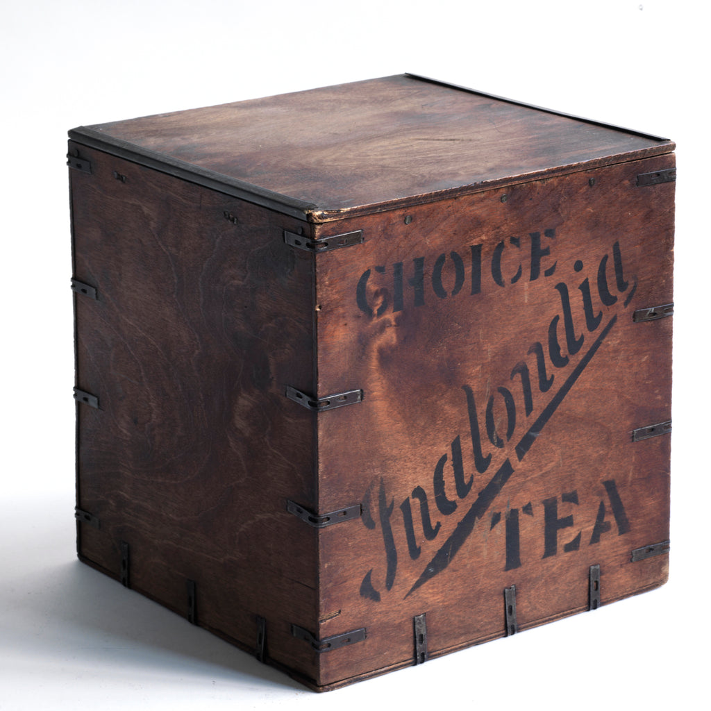A small Victorian stained ply tea chest stamped "Choice Inalondia Tea". It has metal braced corners and the lid has metal sliders, and inside it is lined with silver paper - as all old tea chests were. It could be used to house boxes of tea or a mega supply of tea bags - or other store-cupboard packets and bits and bobs that are forever in need of a good-looking home.