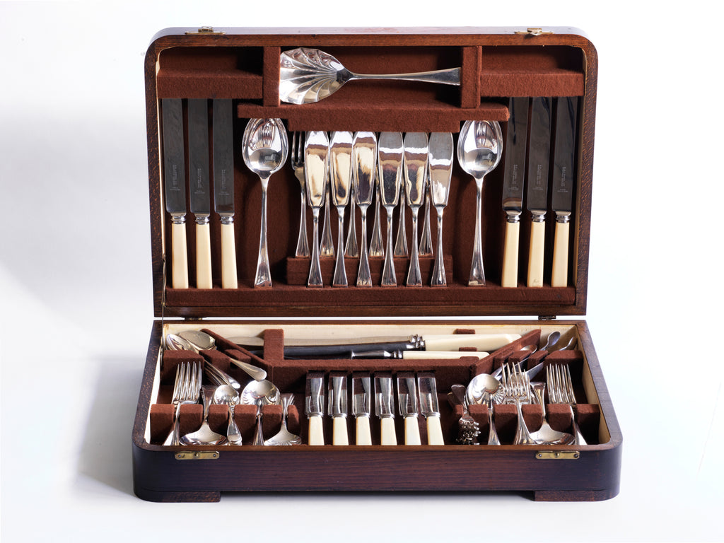 A plate of good food is lost without a good knife and fork. Well-proportioned, well-balanced and beautifully designed flatware is a joy to use and is the making of a good meal. Our vintage ‘bone-handled’ knives are both good-looking and functional, and their renewed popularity make them a stylish addition on today’s table. The knives have ivorine handles fashioned from xylonite, and have high-polished stainless steel blades. All forks and spoons are silver-plated EPNS (electro-plated nickel silver).