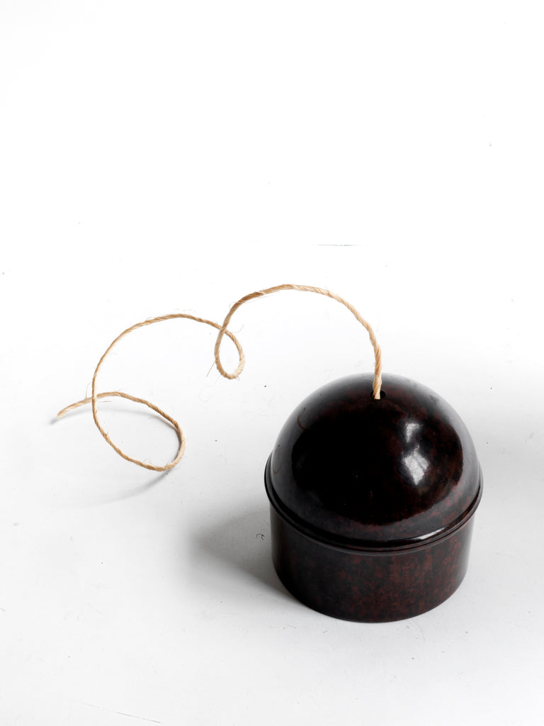 A 1930s Bakelite string dispenser with straight sides and a domed screw-top lid, and a good example of early twentieth century Modernism. The base is marked "British UP Made". As a design principle Modernism promoted sleek, clean lines and eliminated decorative additions that were purely for the sake of embellishment. It was a new world that took its forms from technology, factories, practicality and usefulness. Form certainly follows function in the design and material that was used to make this string holder.