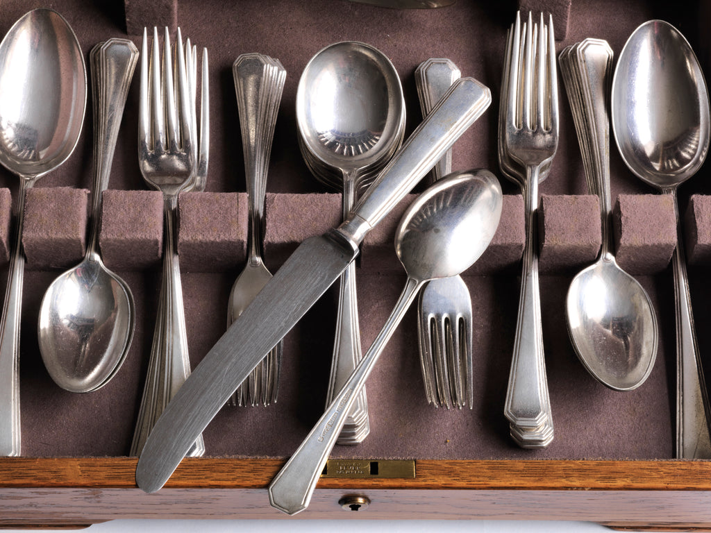 Condition: good, with some fine scratches on the blades and a little bit of wear to the back of a couple of the spoons - see image.