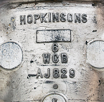 We have just three of these unique and rare early twentieth century maquettes, bought directly from Hopkinsons in 2004 when the foundry relocated, dispensing with its old fixtures and fittings. Now fitted with cabinet hooks, it makes for a highly sculptural wall hanging - a handsome slice of Victorian Britain's industrial engineering history.
