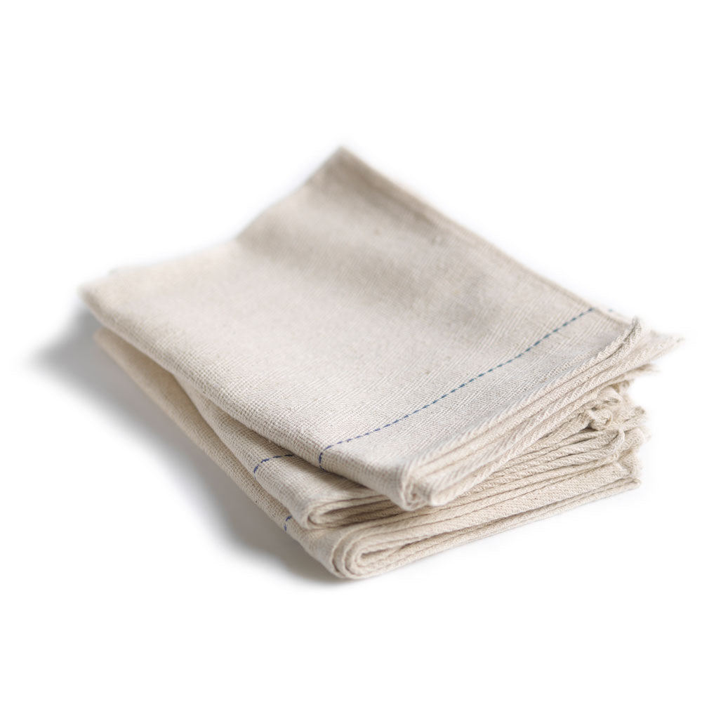 An all-purpose kitchen drying cloth with a blue-stitch border, that could also double as a table napkin.