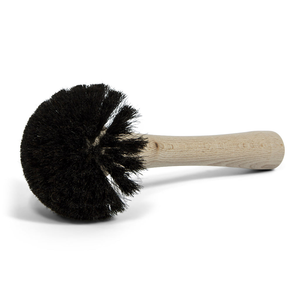 A beautifully designed brush that will dive into your teapot and do the business, reaching the awkward zone between lid opening and and spout filter. It has a very comfortable beech wood handle and is hand-tufted with a hemisphere of horsehair bristle.