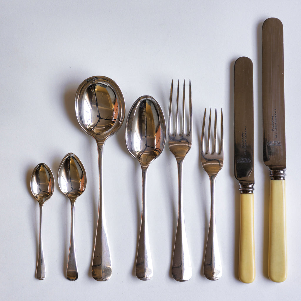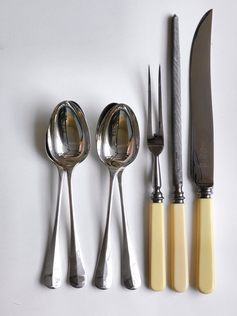 A plate of good food is lost without a good knife and fork. Well-proportioned, well-balanced and beautifully designed flatware is a joy to use and is the making of a good meal. Our vintage ‘bone-handled’ knives are both good-looking and functional, and their renewed popularity make them a stylish addition on today’s table. The knives have ivorine handles fashioned from xylonite, and have high-polished stainless steel blades. All forks and spoons are silver-plated EPNS (electro-plated nickel silver).