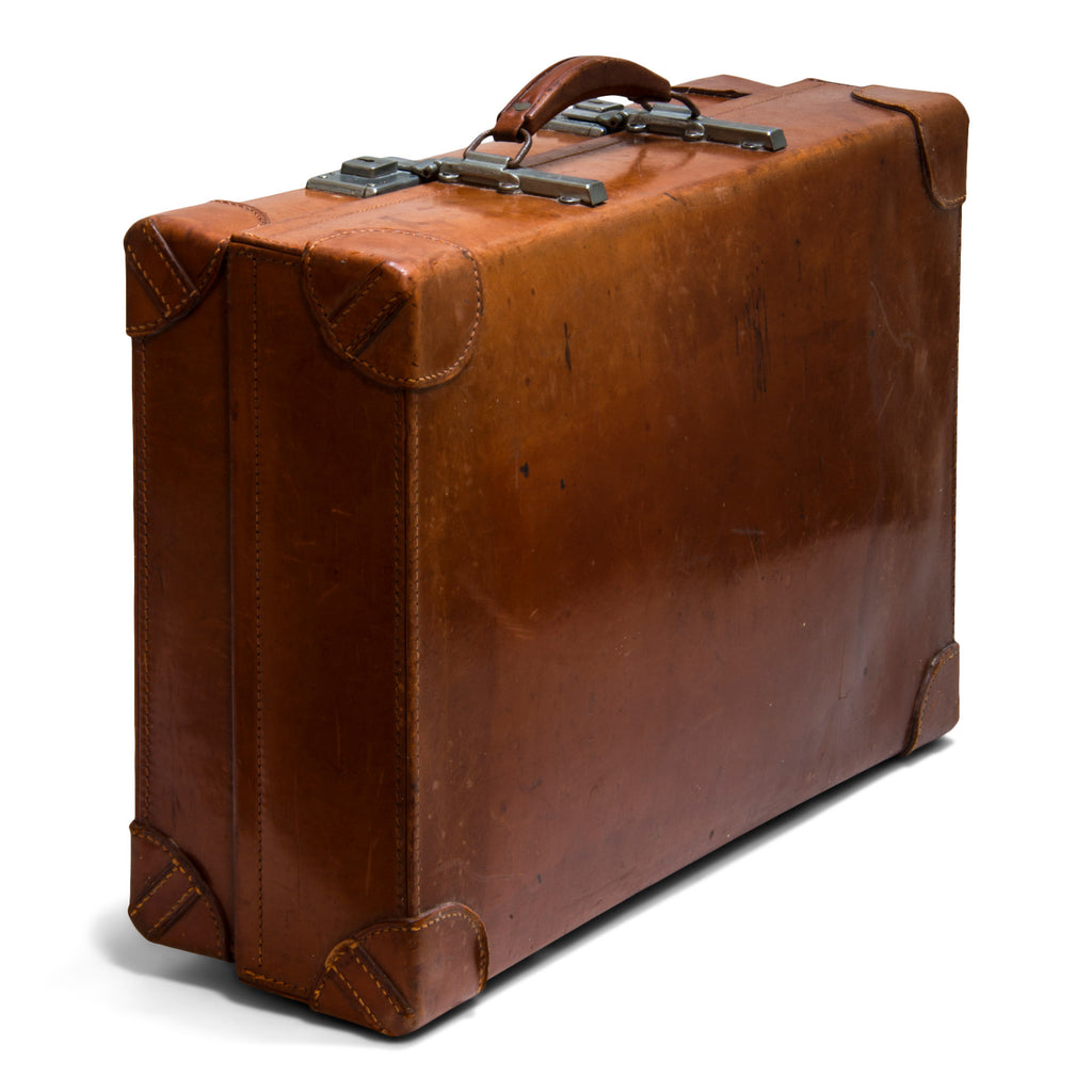 Condition: good with slight scuff marks and scratches to the leather - all character-building, and in keeping of a suitcase of this age. The flax lining inside has some blemishes and marks too.