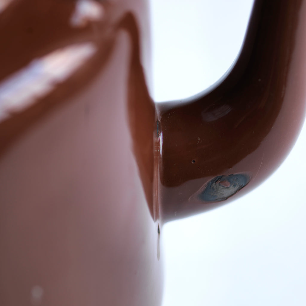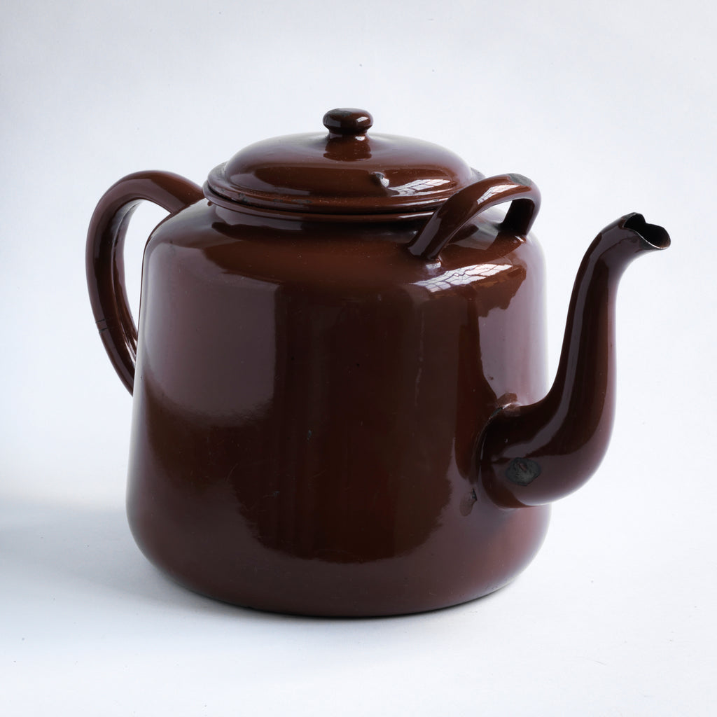A striking and very large vintage brown enamel canteen teapot, capable of delivering around 16 cups of tea.