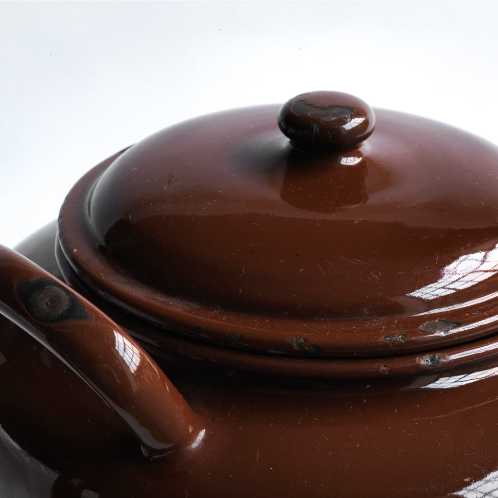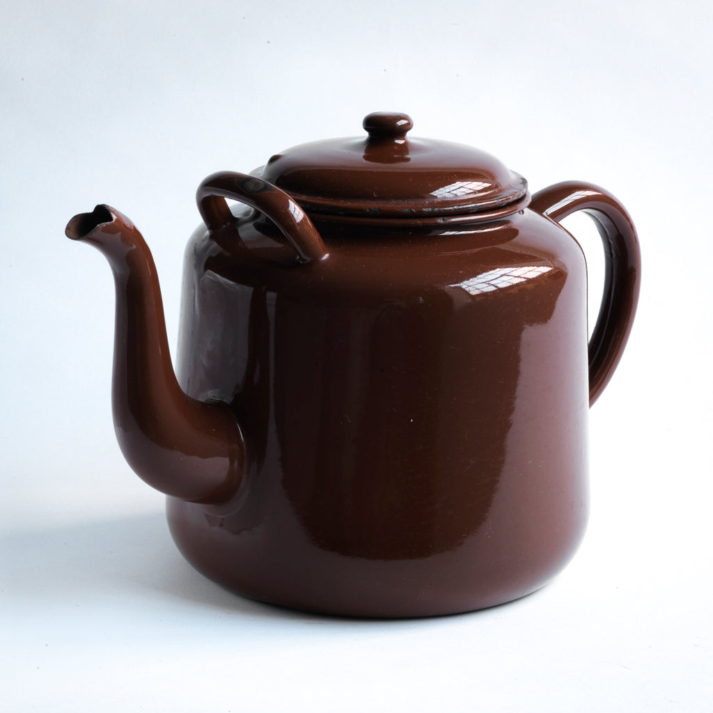 Up until the late 19th century your everyday teapot was either ceramic or tin. Although the enamelling process had been invented hundreds of years before, it took the Industrial Revolution to drive forward the quality of vitreous enamelling and its application to everyday household objects; and by the dawn of the 20th Century enamelled kitchen equipment, pans, vessels, kettles and teapots had become commonplace. Enamel teapots became a 1920s alternative to their much heavier ceramic cousins, and the first half of the twentieth century saw their heyday, when enamel kitchenware became all-the-rage. Apart from being much lighter in weight and therefore far easier to use, they survived the rigours of a busy kitchen - for they didn't shatter when dropped. They also made a damn fine brew.