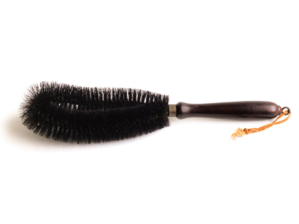 A handy brush with an oval bristle arrangement, and excellent for dealing with all those awkward nooks and crannies around the home. It has a polished painted wood handle, and useful hanging loop - and was made by "Kleen-e-ze" in the 1930s.